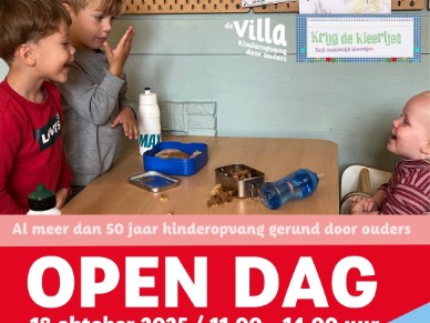 Kinderopvang Door Ouders “De Villa” organiseert een Open Dag op 18 oktober a.s. van 11.00– 14.00 uur...